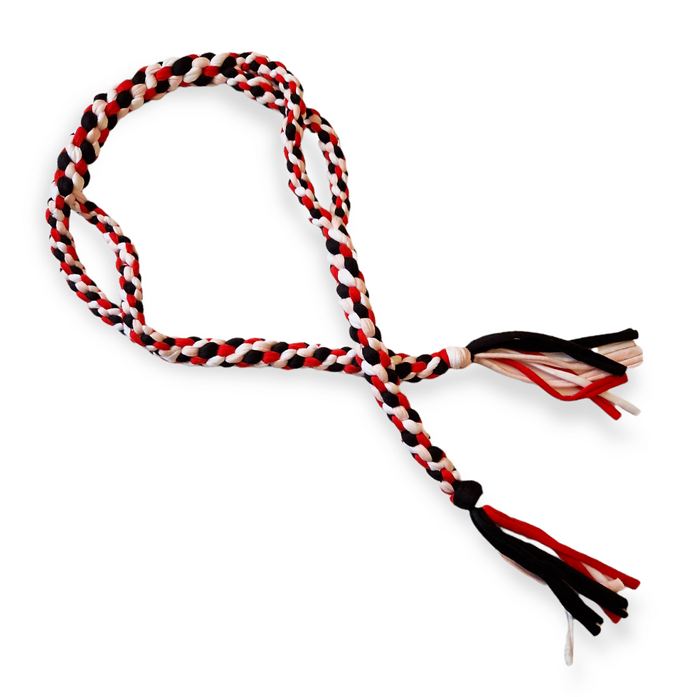 Trekspelletjes, apporteren of gewoon tevreden liggen kauwen terwijl het gebit wordt gereinigd – onze flostouwen zijn echte multitaskers. Elk touw wordt met de hand gemaakt van stevig restmateriaal uit de mode- en textielindustrie, zoals t-shirtgaren. Dat is niet alleen duurzaam, maar ook zachter en veiliger dan standaard touw, waar soms scherpe vezels of losse draadjes aan zitten die risico’s kunnen opleveren bij fanatieke kauwers. Onze flostouwen zijn dus een veilige keuze voor je hond én een bewuste keuze voor de planeet. En met de vrolijke patronen en kleuren zijn ze stiekem ook gewoon leuk voor het baasje.